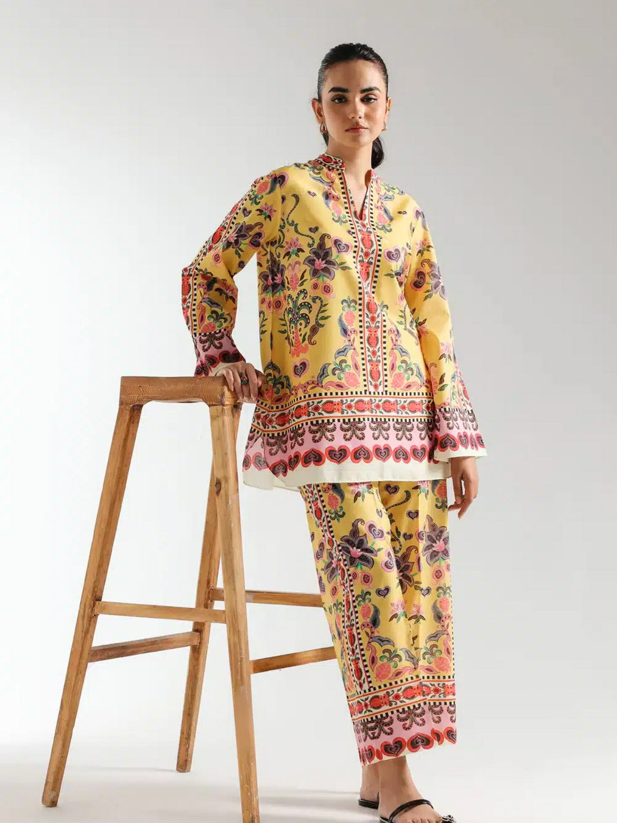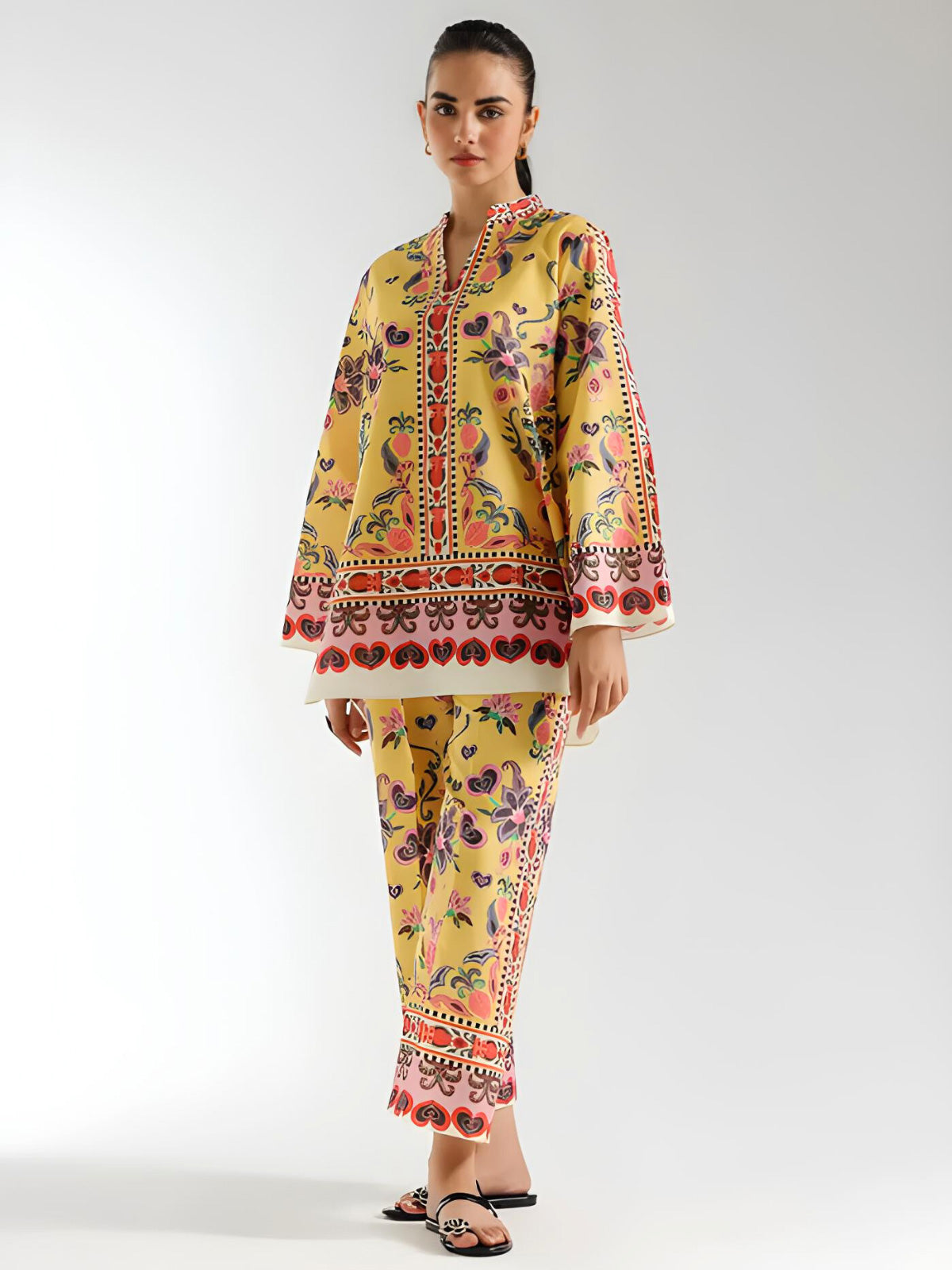 Stay chic with Amira, a lawn silk 2-piece set featuring a simple shirt and matching trousers in vibrant digital prints. Light, breathable, and stylish—perfect for everyday elegance.