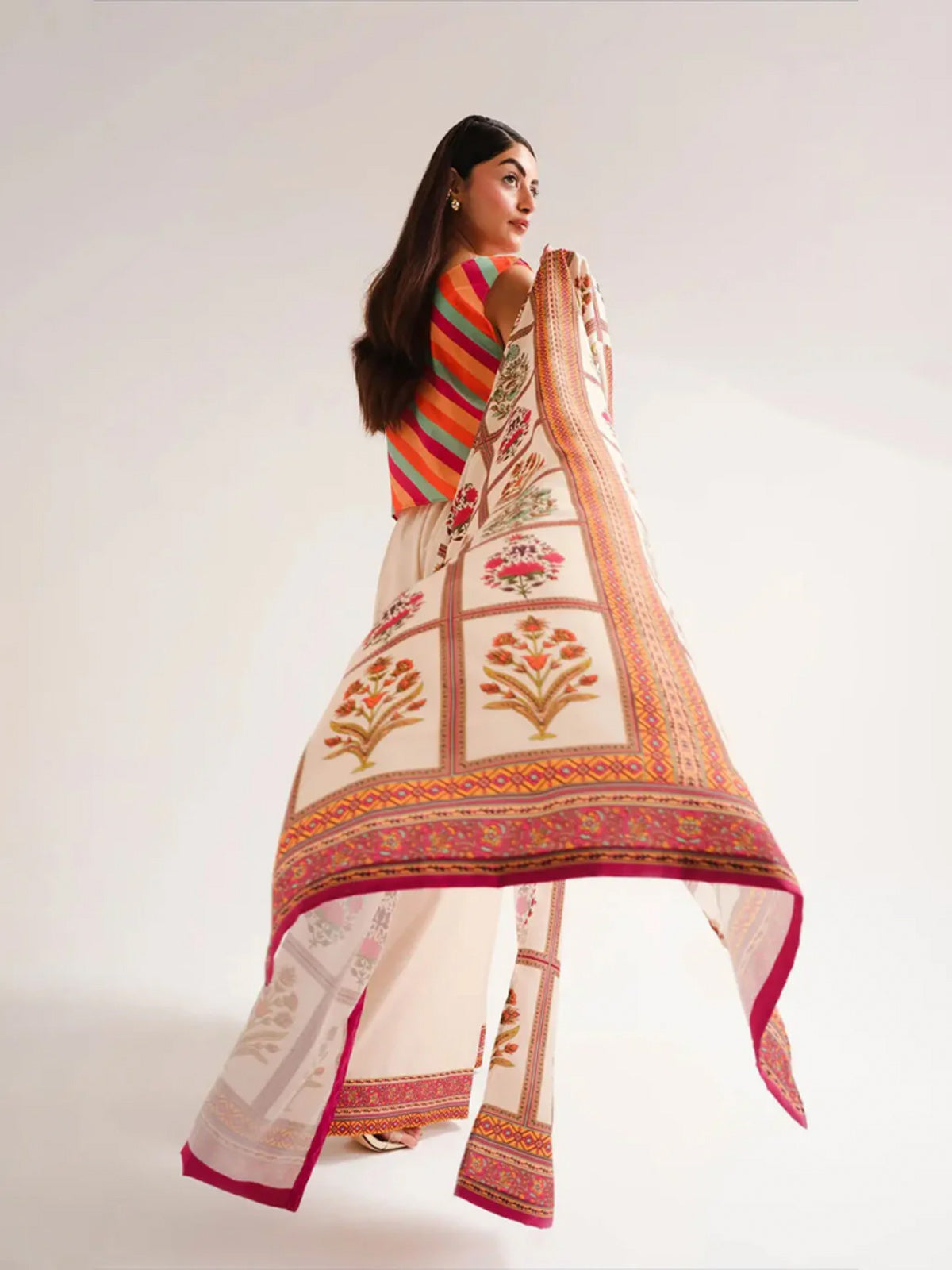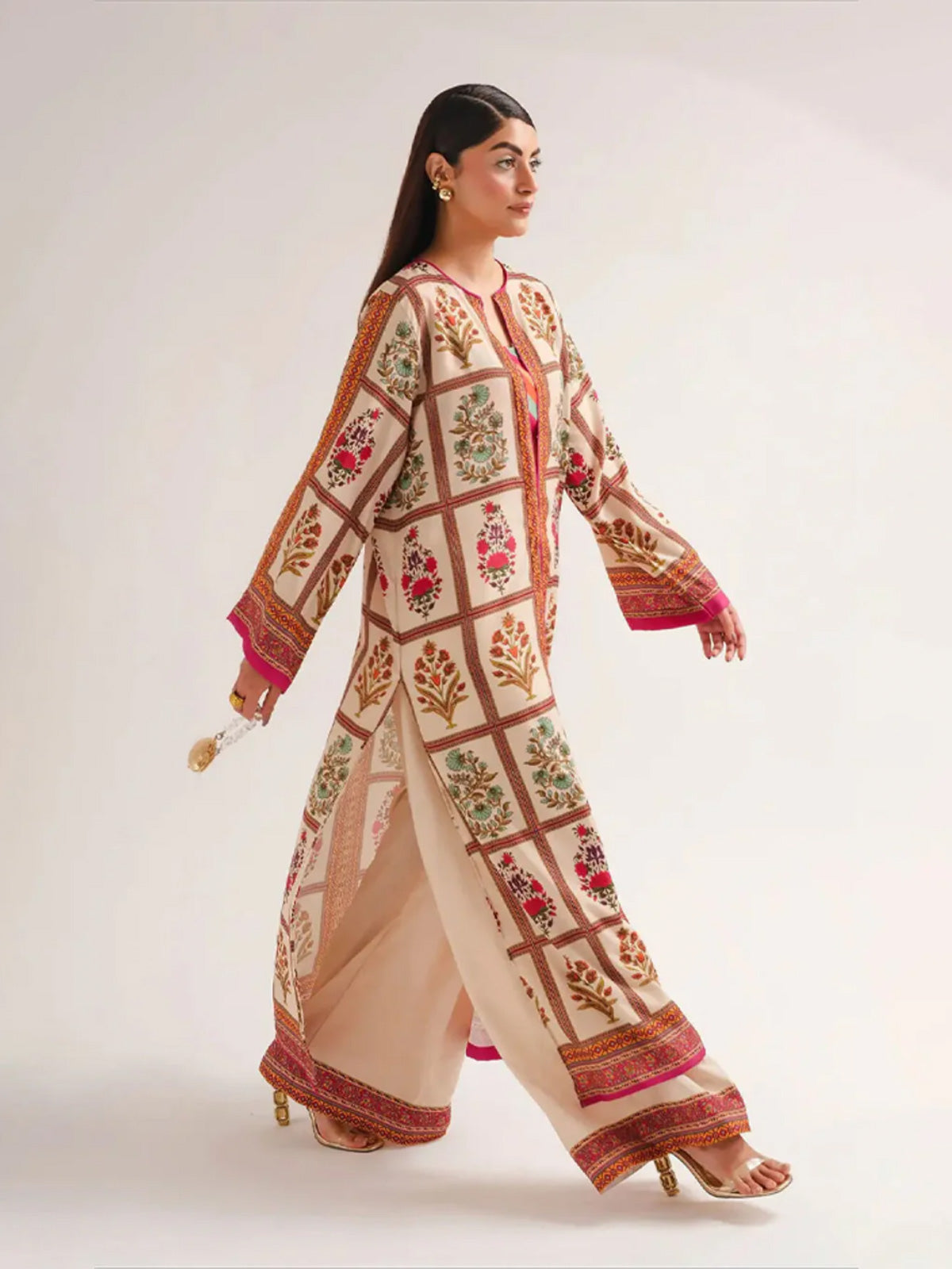 Redefine everyday elegance with this 2-piece printed co-ord set, tailored from soft crepe fabric. With its graceful cuts and refined detailing, this outfit blends comfort and sophistication, making it a versatile choice for any occasion.
